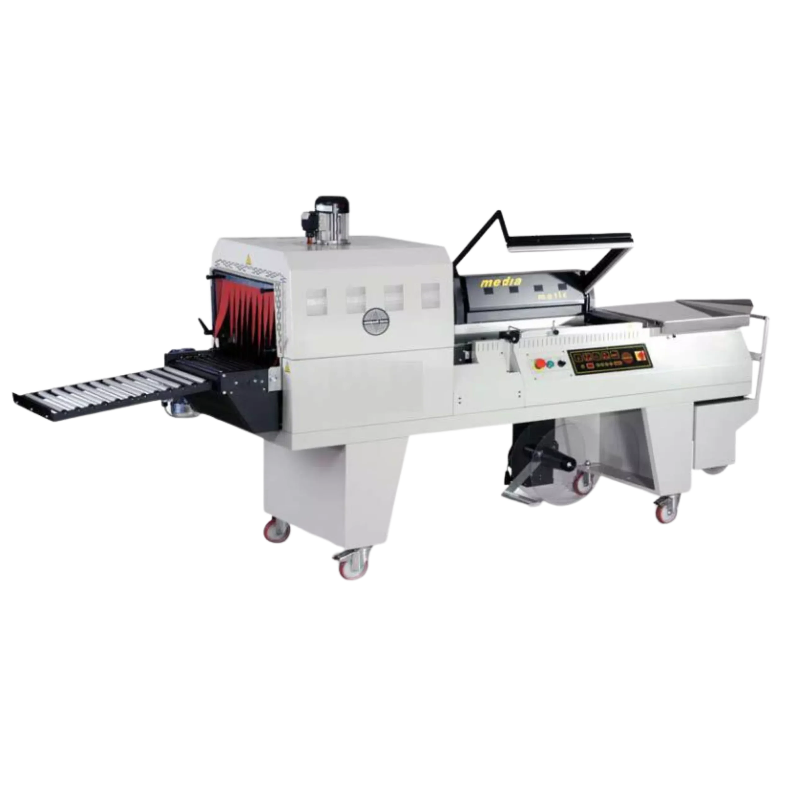 Coupe et scellage du film par une seule pièce mécanique téflonnée, Freinage manuel de la bobine, Grande facilité de nettoyage et d’évacuation des résidus alimentaires.Applications : Rayons boucherie, charcuterie, fromagerie ...